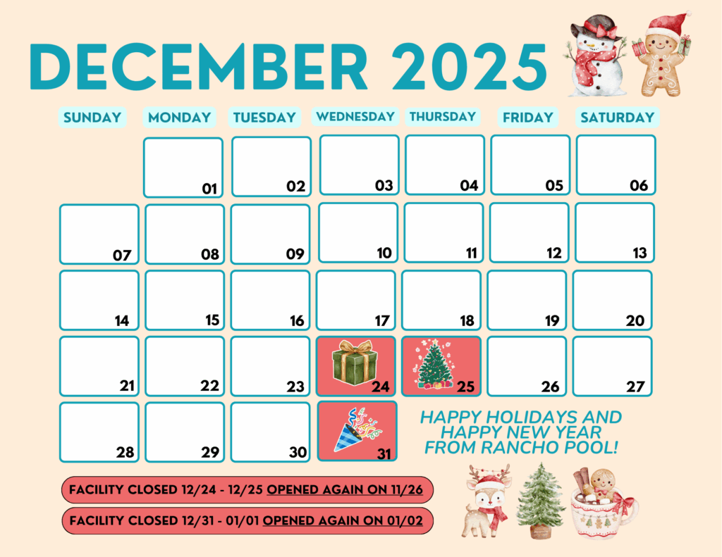 Please note that the dates may be subject to change. For the latest updates and announcements, follow us on Instagram and check the Rancho Pool website Homepage regularlyÂ